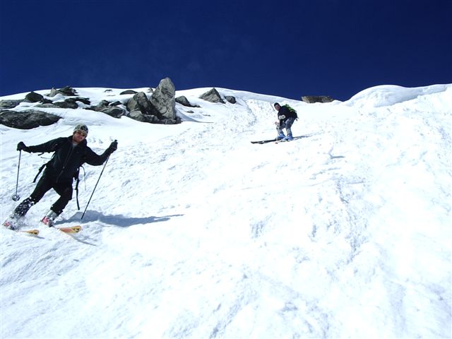 Nad ledenikom tik pod vršnim grebenom smo se priključili klasičnemu pristopu z jeza in po grebenu na vrh!