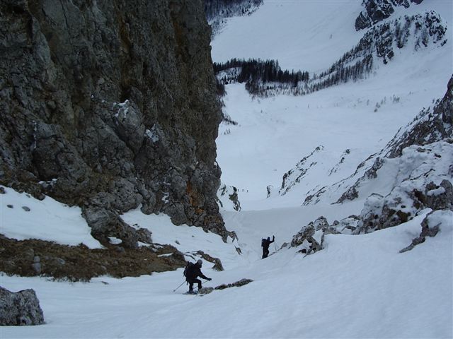 Smučarija iz vrha in v žlebu je bila OK, nižje pa je bilo vse bolj mehko in južno, pač temperaturam primerno.