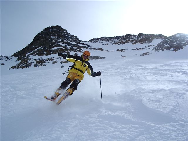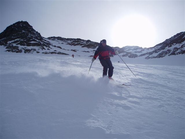 Smučali smo po severni flanki izpod vrha in večji del spusta imeli pršič. Vse je štimalo, prismučali smo skor do avta (2 min. peš).