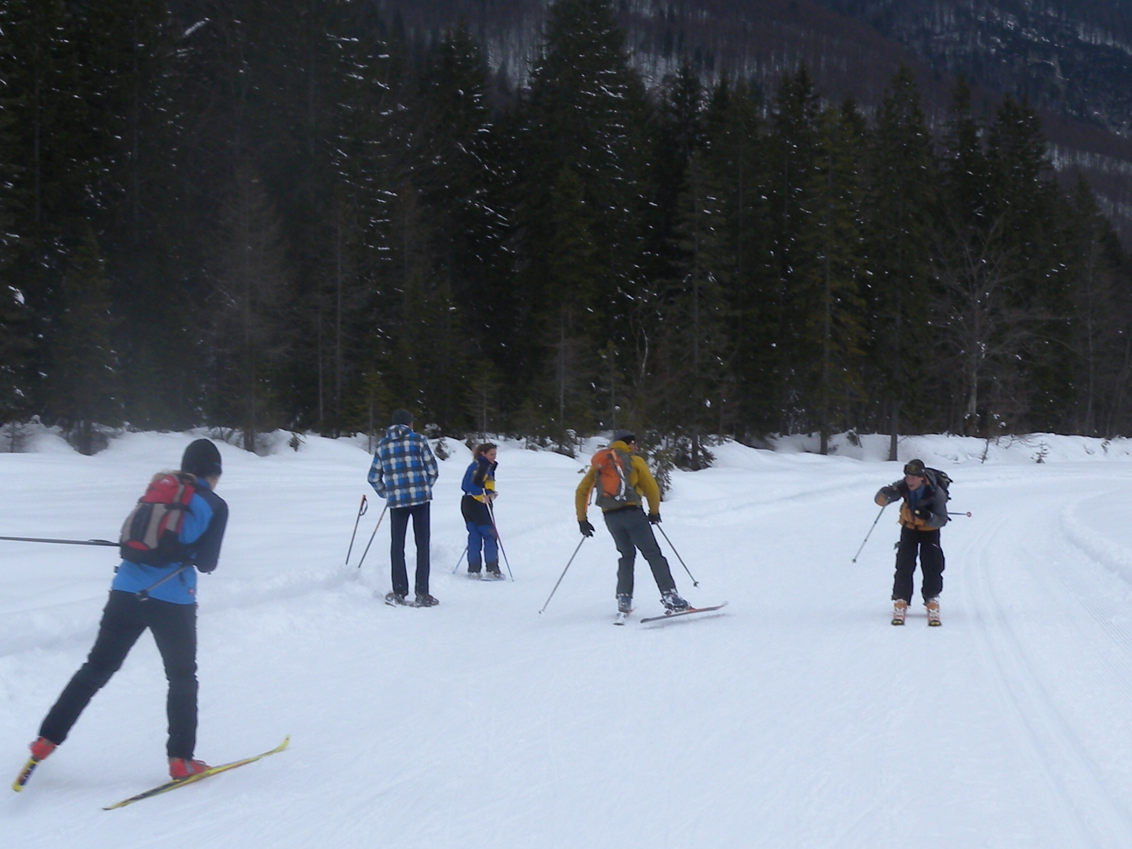 V nedeljo, 20.2. smo bili zopet v najlepši dolini Zahodnih Julijcev – Zajzeri.Vožnja je tokrat minila res hitro, kot bi mignil in že smo parkirali v bližini starih vojašnic. Skozi Špranjo smo se povzpeli pod Koštrunove špice in nato levo v Mojzesov žleb do vrha Škrbine zadnje Špranje (2271 m). Smuka je bila solidna, malo pršiča,skorje in zbitega snega na koncu pa še strečing po tekaški progi.
