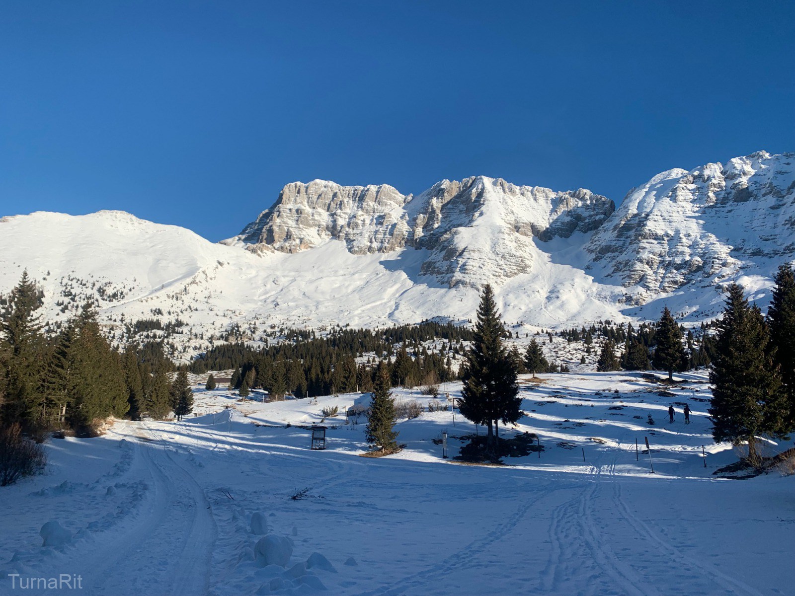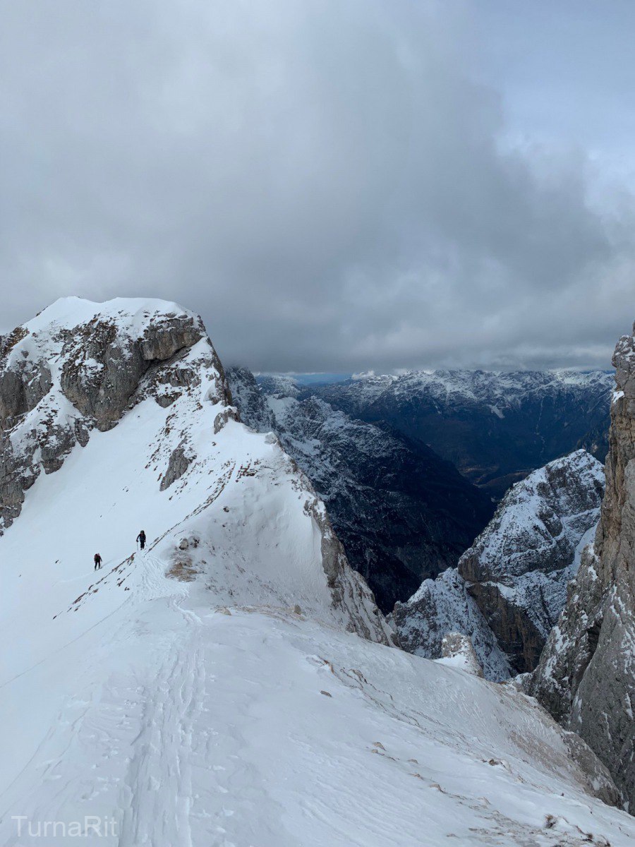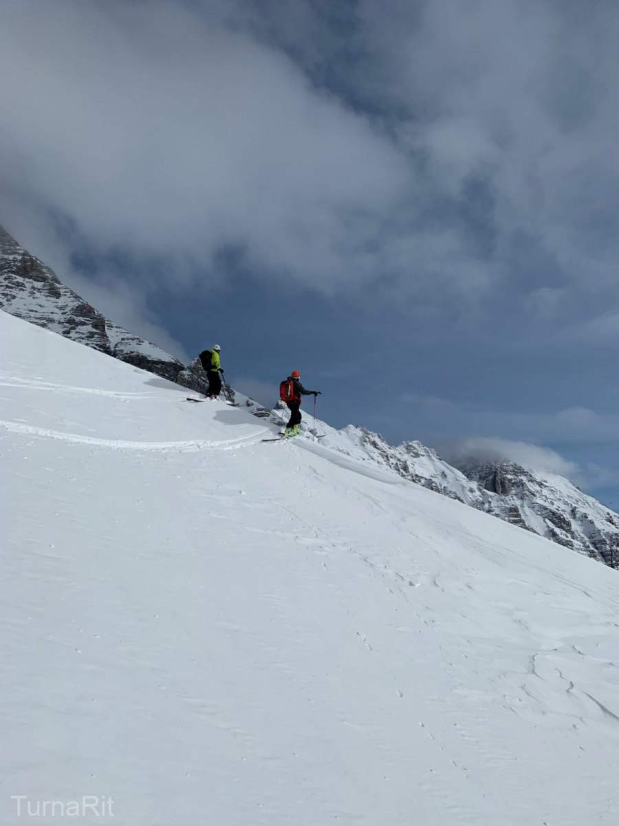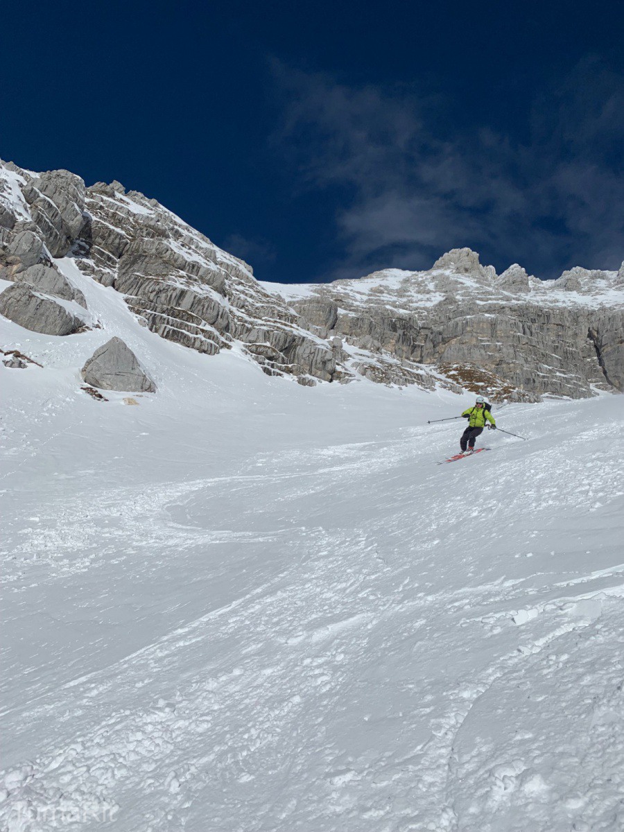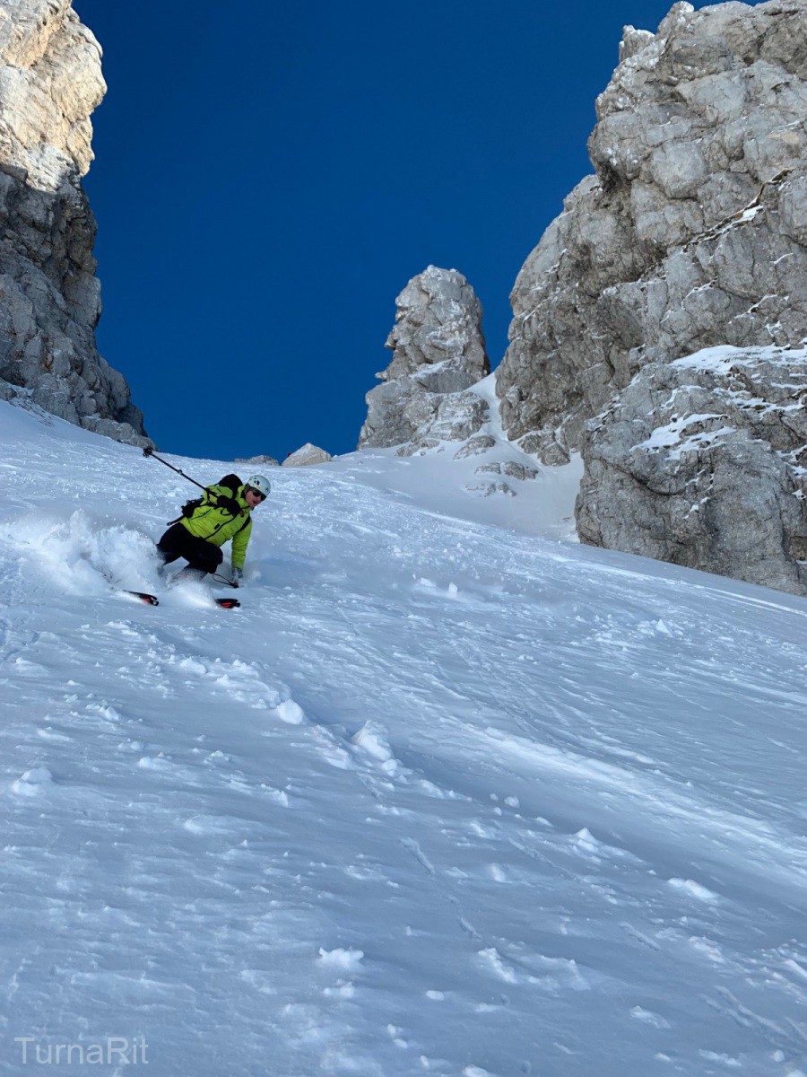 V soboto smo izkoristili maksimalno lep dan s spomladanskimi temperaturami, brez vetra. Radovednost nas je zapeljala do Pecola. S parkinga pri hotelih Selle Nevee smo nesli smuči približno pol ceste do planine, kamor so se nekatere fiat pande italianske bande tudi zapeljale. Kljub zgodnji uri je na Pecolu hitro vse obsijano, plazovi preteklih dni so bili že fajn predelani. Zapodili smo se na dve klasiki- najprej proti redki senci Škrbine nad Cijanerico (Forca del Palone 2242m), kjer je špuro prejšnjih dni dodobra zapihalo in smo jo zdrli malo po svoje. Po levi smo odsmučali nekaj pršiča, nato pa zavili desno po avtocesti še na sedlo Vrh Strmali – škrbina pod Montažem (Forca dei Disteis 2201m) , kjer se je ravno zoblačilo. Smuka po flanki je bila glih prav zmehčana od sonca, nižje pa je že začelo vlačiti repe. Še nižje je minsko polje, ki ga v parih dneh, sodeč po vremenski napovedi, ne bo več.