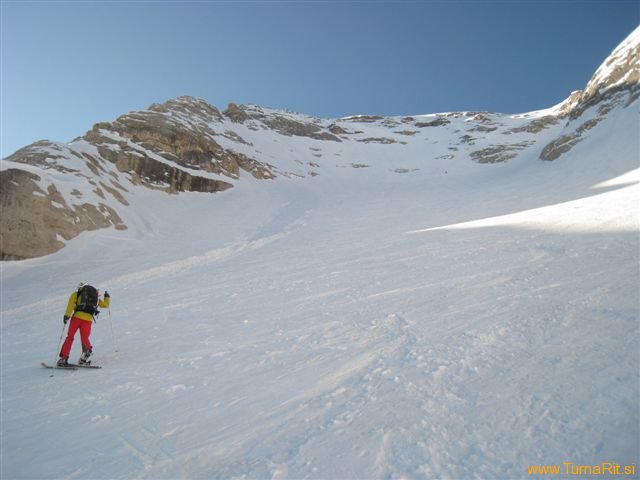 Smučali smo z vrha čez severno flanko in mimo vlečnice Pian dei Fiacconi do jezera Fedaia na istoimenskem prelazu. Razmere za smučarijo so bile dobre, v najstrmejšem delu pod vrhom je bilo trdo, robniki so fajn grabli, nižje proti dolini pa puter. Ujeli smo super razmere, tudi jutranji orkanski veter se je čez dan malo umiril!