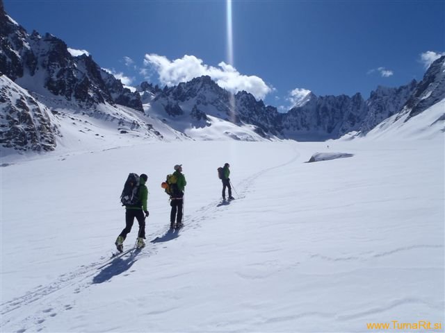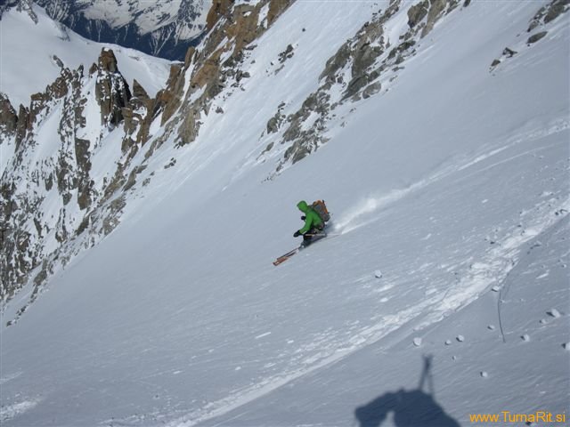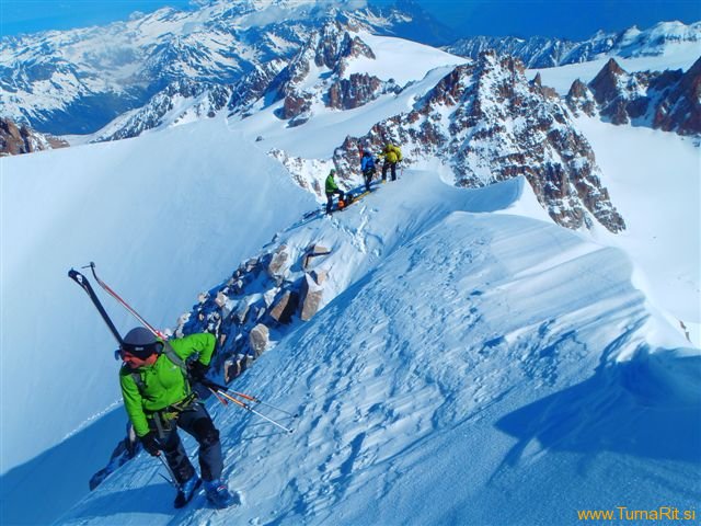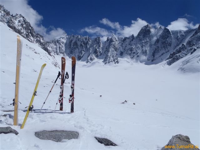 smo se podali na smuči. Smučali smo z  sedla Col d’ Argentiere-a (3552m) in vrha Aiguille d ‘Argentiere (3902m).