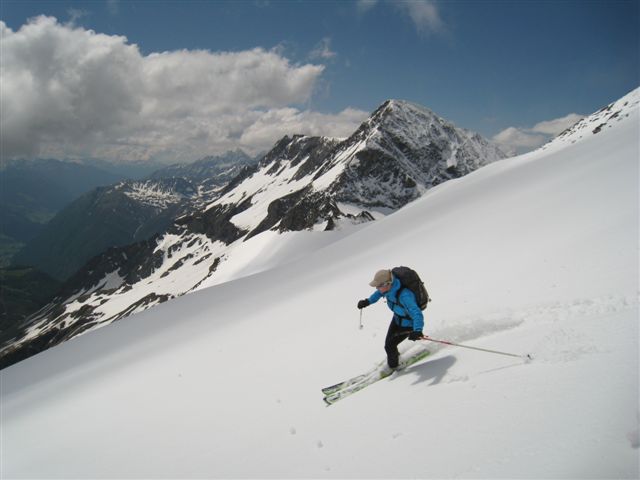 Najprej smo vseeno šli na Brennkogel, ki smo ga sprva zaradi megle falili, v drugo, ko se je malo razkadilo, pa smo ga najdli. Pri smuki nazaj grede je bilo Dukano dovolj in je odsmučal proti avtu, mi pa pese nazaj na dile in na Spielmann.
