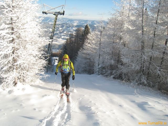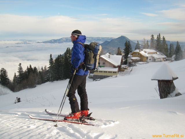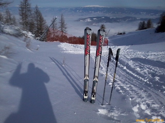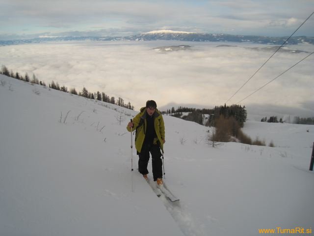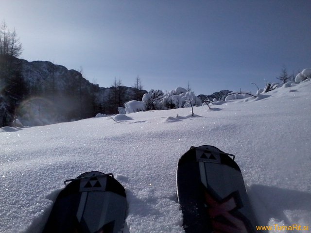 V ponedeljek sva bila na turi s Perotom. Snega je bilo zelo malo. Do Mošthite sva dile nesla in nazajgrede enako. Zgoraj je bilo malo več snega (30 pršiča brez podlage).