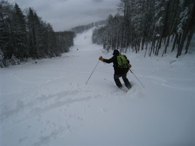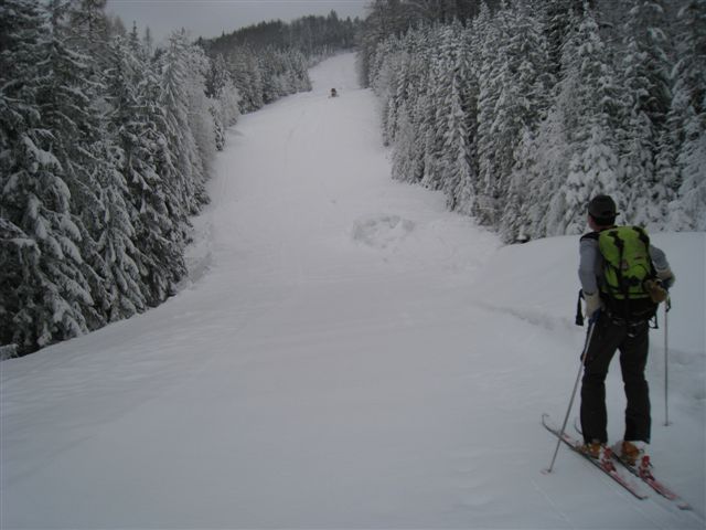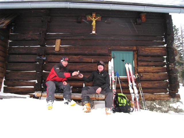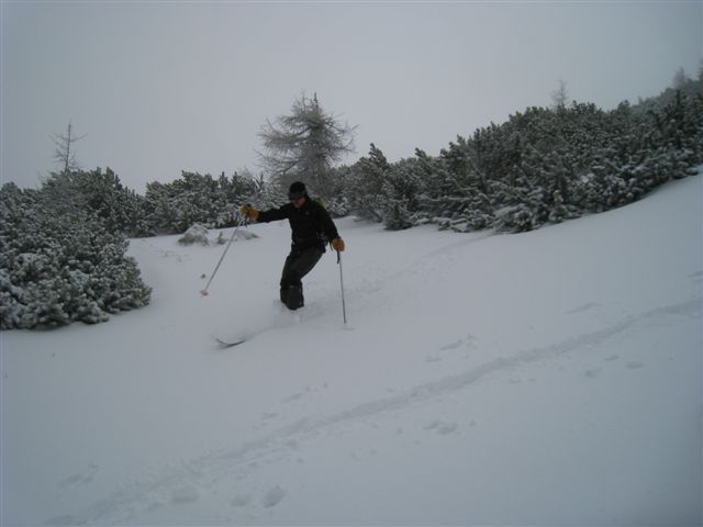 Smučarija čez Pecnkenik je bila super – 30 celca na podlago, nižje pa brez podlage. Oborožena s starimi dilami sma se kamot pridričala do avta na parkplacu.