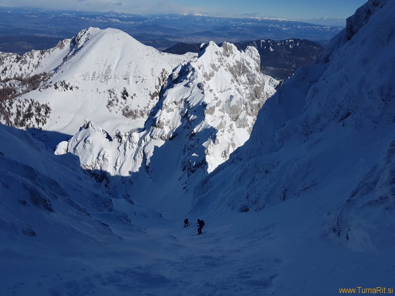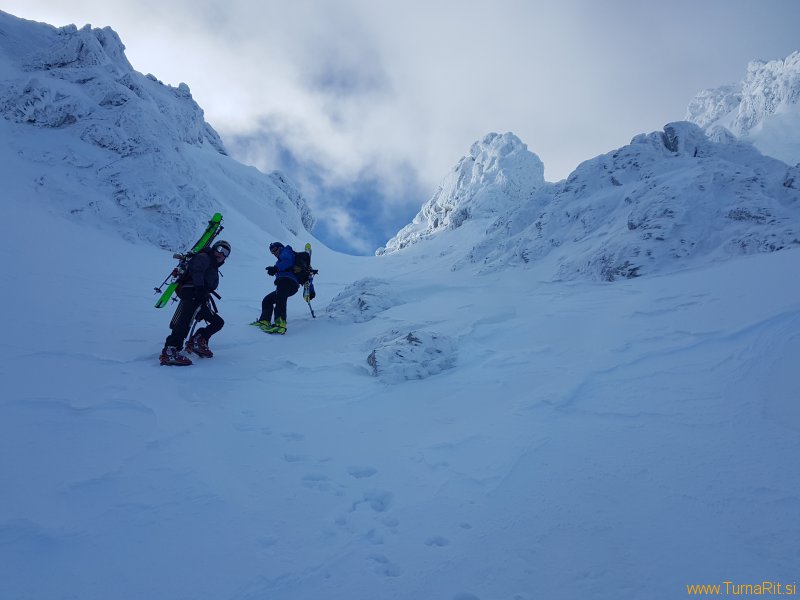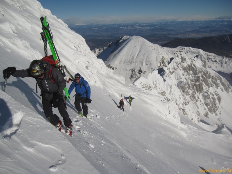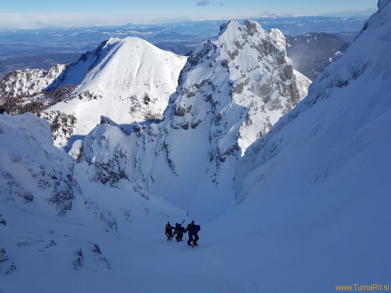 Iz Medvedjega dola smo šli skozi Janezov žleb na vrh. Celo pot, razen na vrhu, nas je bičal hud veter.