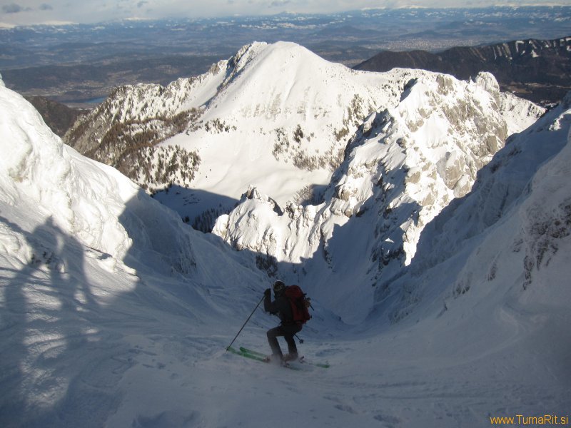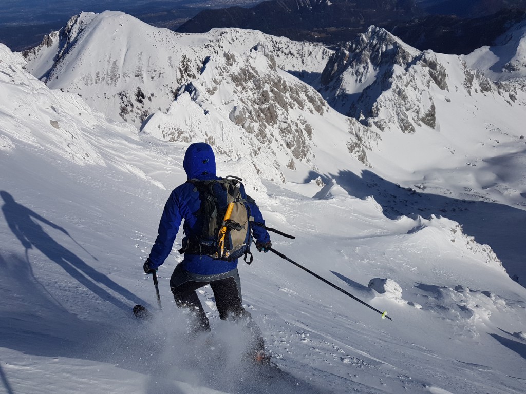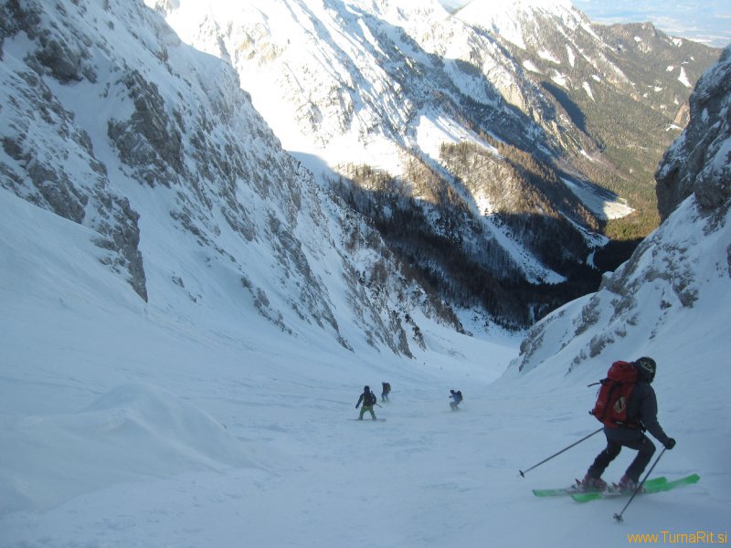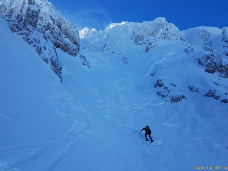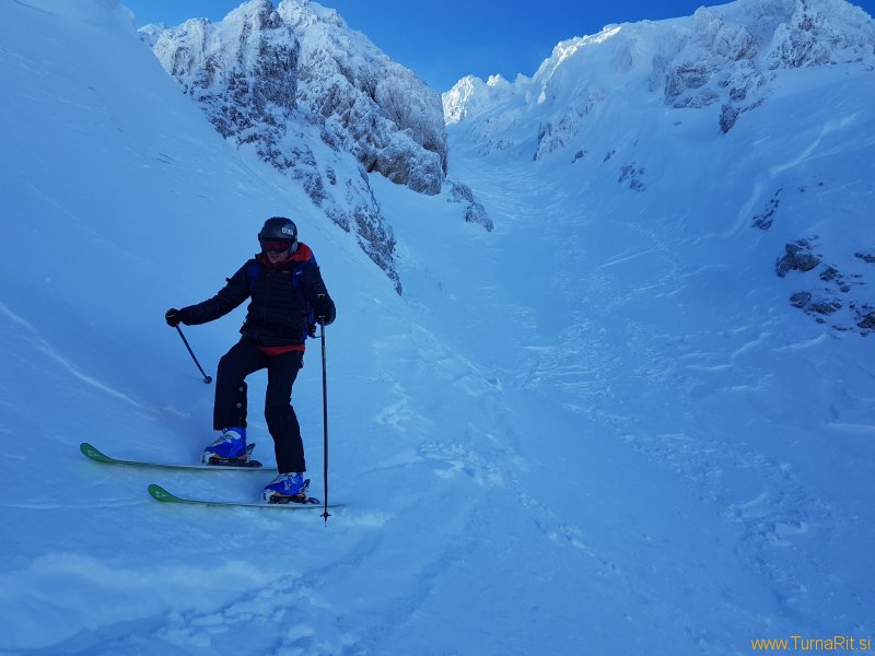Smuka nazaj skozi Janeza pa je bila fejst trda.  Med ledenimi površinami smo iskali zaplate suhega napihanca, kjer je bila smuka boljša.
