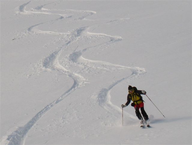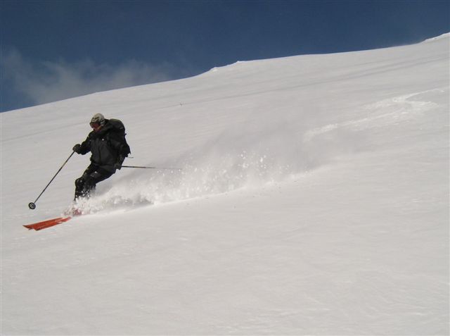 Tudi mi se tu pa tam nastajimo na pol metrski pršič. Najdli smo ga v nedeljo v varnem zavetju Knedlov (Nockberge). Bili smo na vrhu dveh: Falkert-a in Steinnock-a, zbrali pa smo 3 deviške 500 metrske spuste.