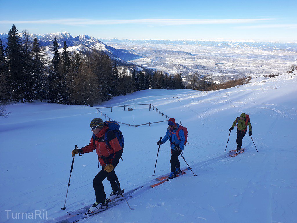 Sneg do dolin smo v nedeljo izkoristili s prečenjem domače Pece. Štartali smo v Podjuni v Globasnici, zaključili pa v Mežiški dolini v Mežici. Na poti smo pobrali glavne vrhove od zahoda proti vzhodu. Veška kopa (2074 m), Bistriška špica (2113m), Križnik (2097m), Končnikov vrh (2109m), Velika glava (2078m) in Kordeževa glava (2126m).