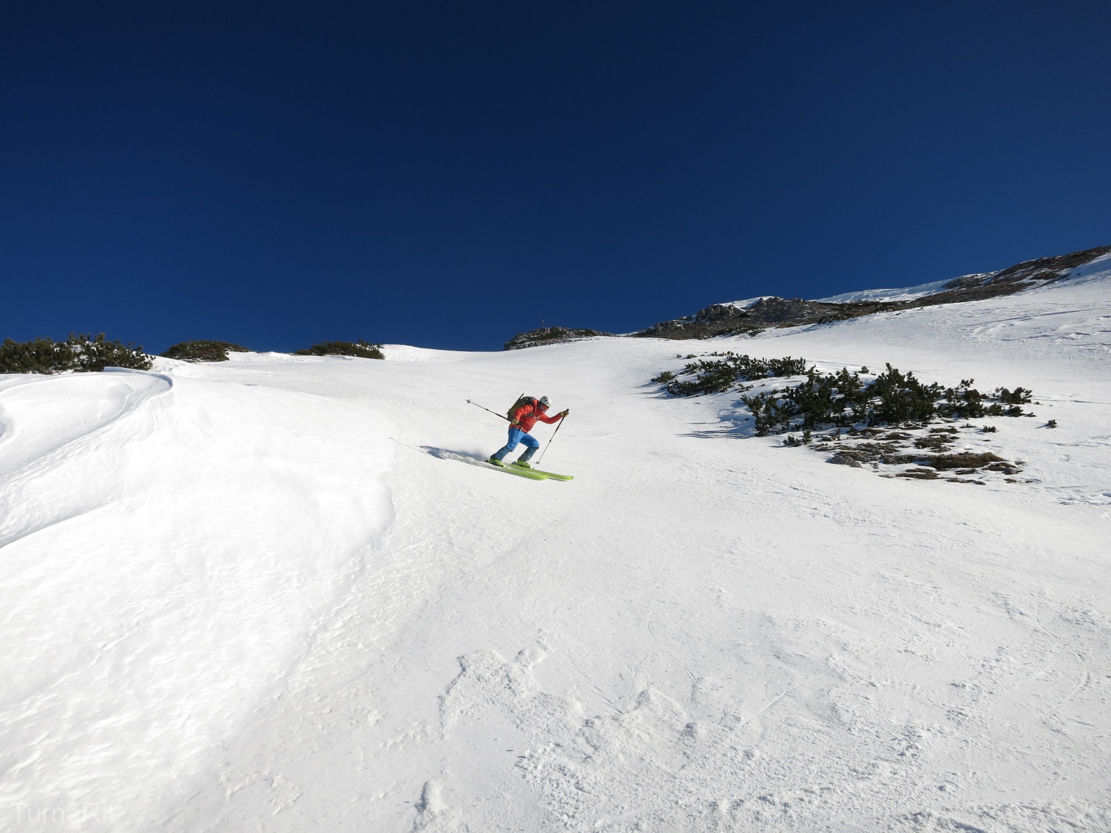 Mogoče smo bili prehitri, saj je bilo malo malo snega v flanki in trd grifig sneg.