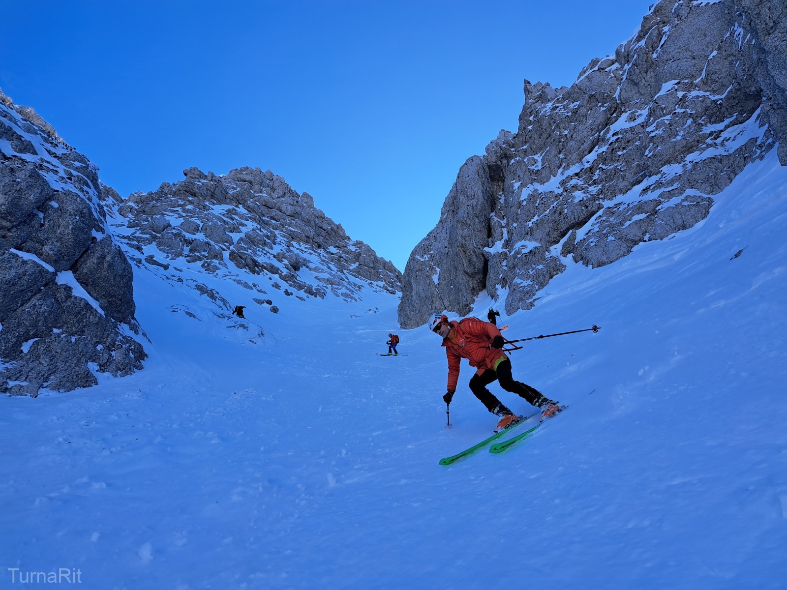 Smučali smo po SZ žlebu – Gipfelrinne – kot mu rečejo naši sosedi.