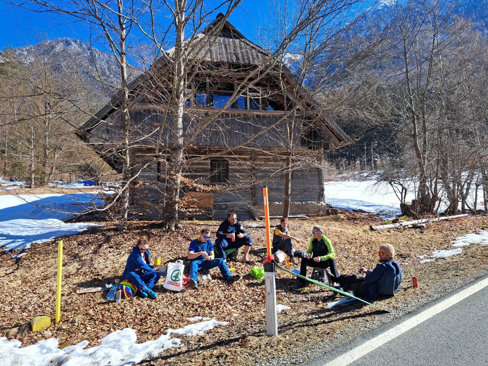 Več kot polovico žleba je bila smuka zelo dobra, spodnji del in naprej po melišču in cesti do izhodišča, pa beton.