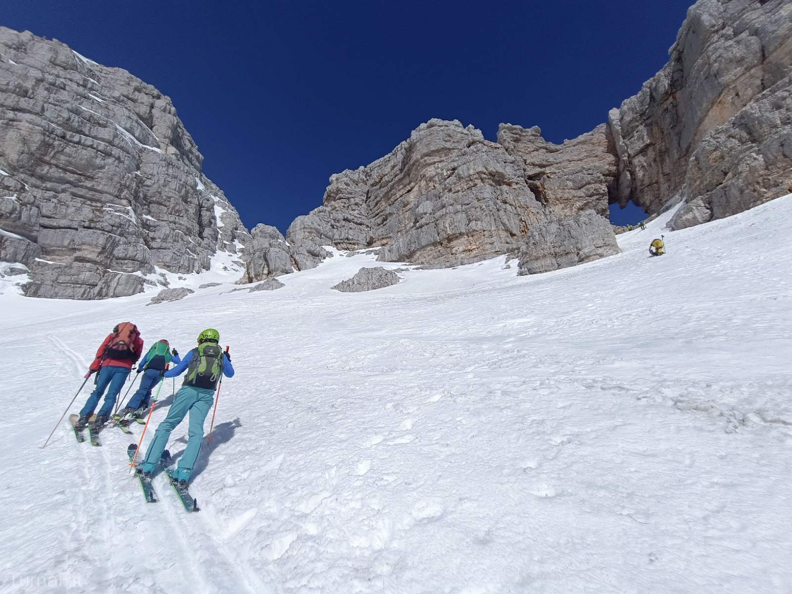 Izkoristili smo zadnji dan delovanja žičnic na Sella Nevei in se potegnili do Prevale. Nadaljevali smo na slovensko stran do okna in nazaj.